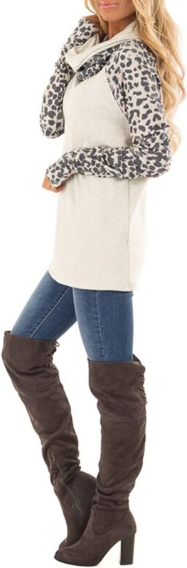 - Unique leopard print long sleeve patchwork,with the stylish cowl neck,contrast color block,and other fashion elements,reflects the master design concept from the whole to details.