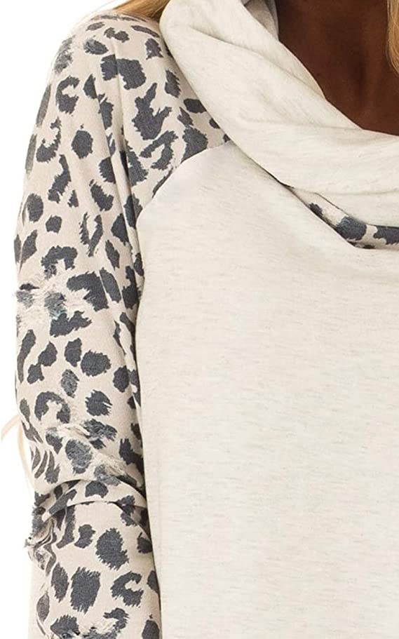Blivener Women's Casual Sweatshirts Long Sleeve Leopard Print Tops Cowl Neck Raglan Shirts