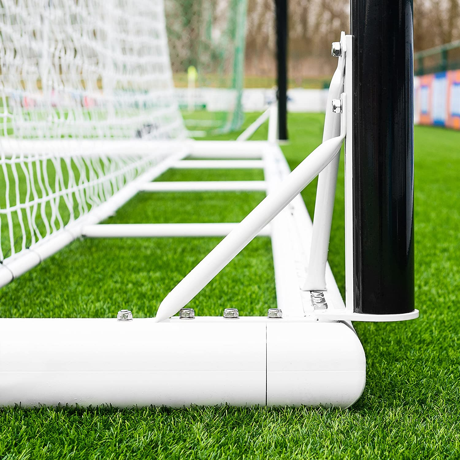 ALUMINUM STADIUM SOCCER GOAL – Manufactured using 110mm reinforced aluminum with a premium polyester powder coating, the pro goals are 100% weatherproof. With different sizes available, the goal can be used as part of soccer practice equipment or professional matches.