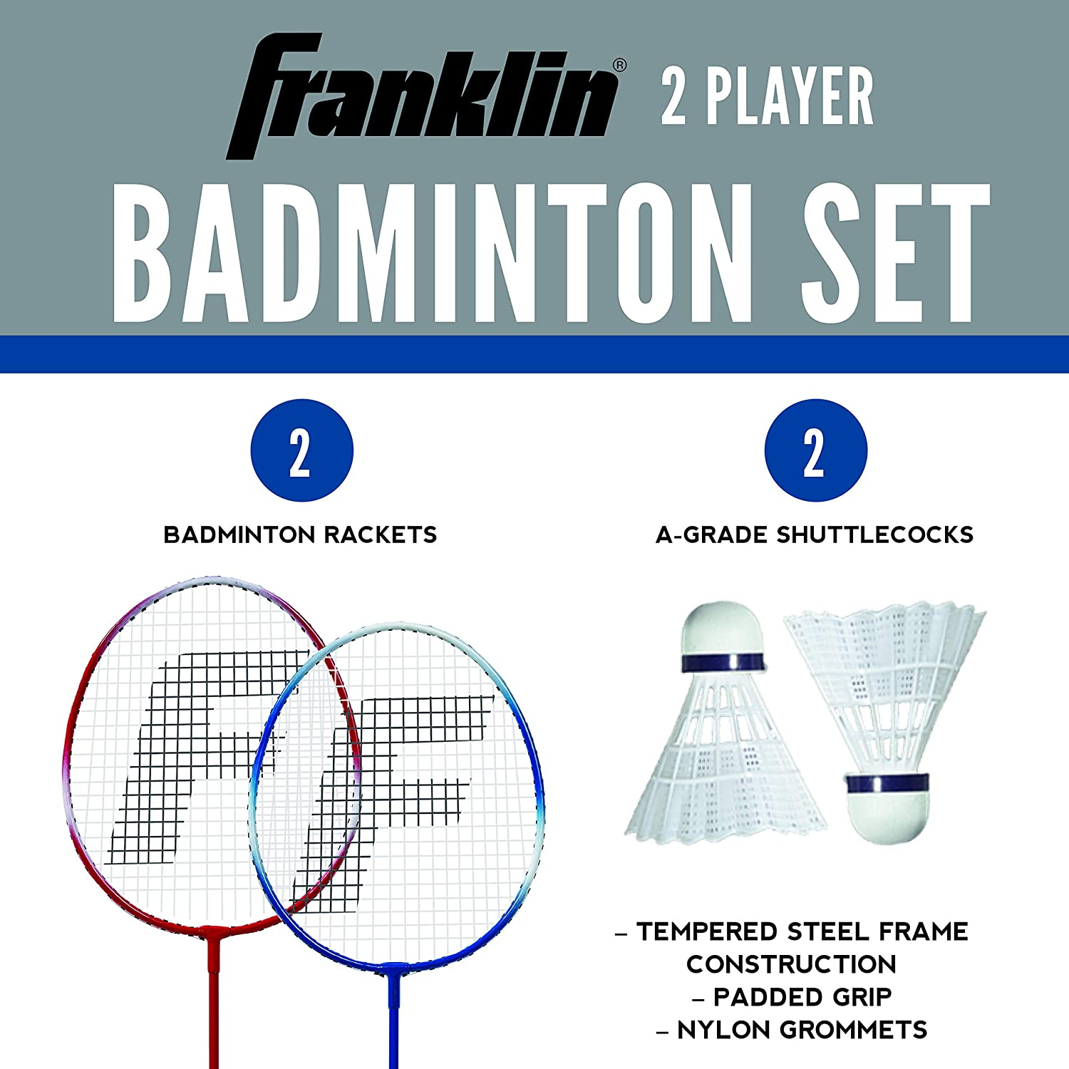 Franklin Sports Badminton Racket + Birdie Set - Replacement Badminton Equipment for Kids + Adults - 2 Player - 4 Player Badminton Racket Sets