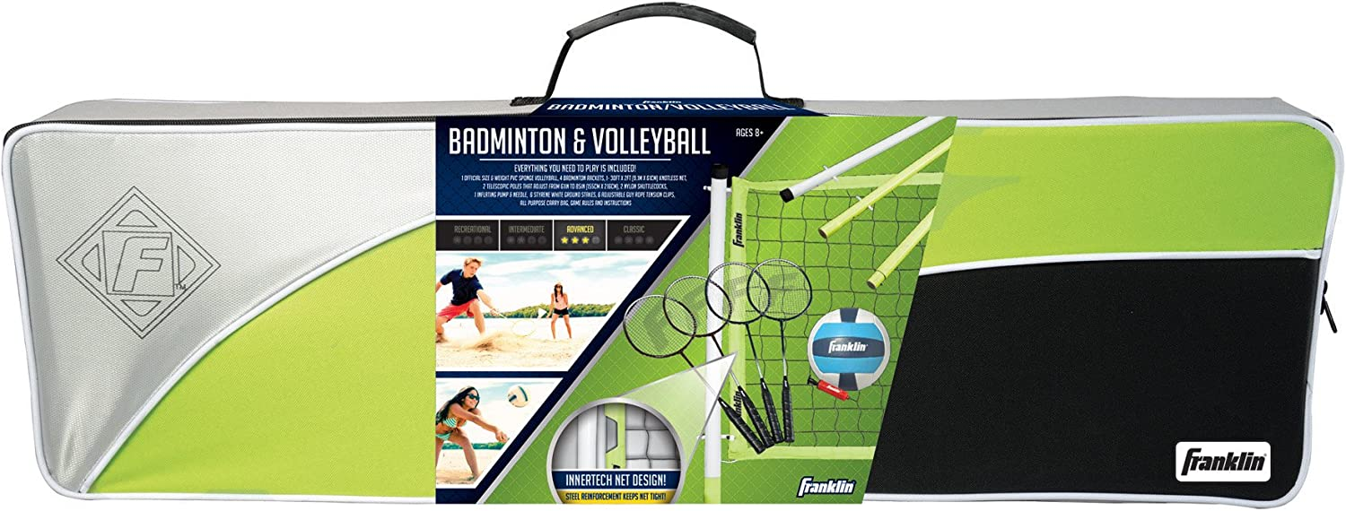 Franklin Sports Volleyball and Badminton Combo Set - Portable Volleyball and Badminton Net with Ball, Racquets and Birdies - All Inclusive Set