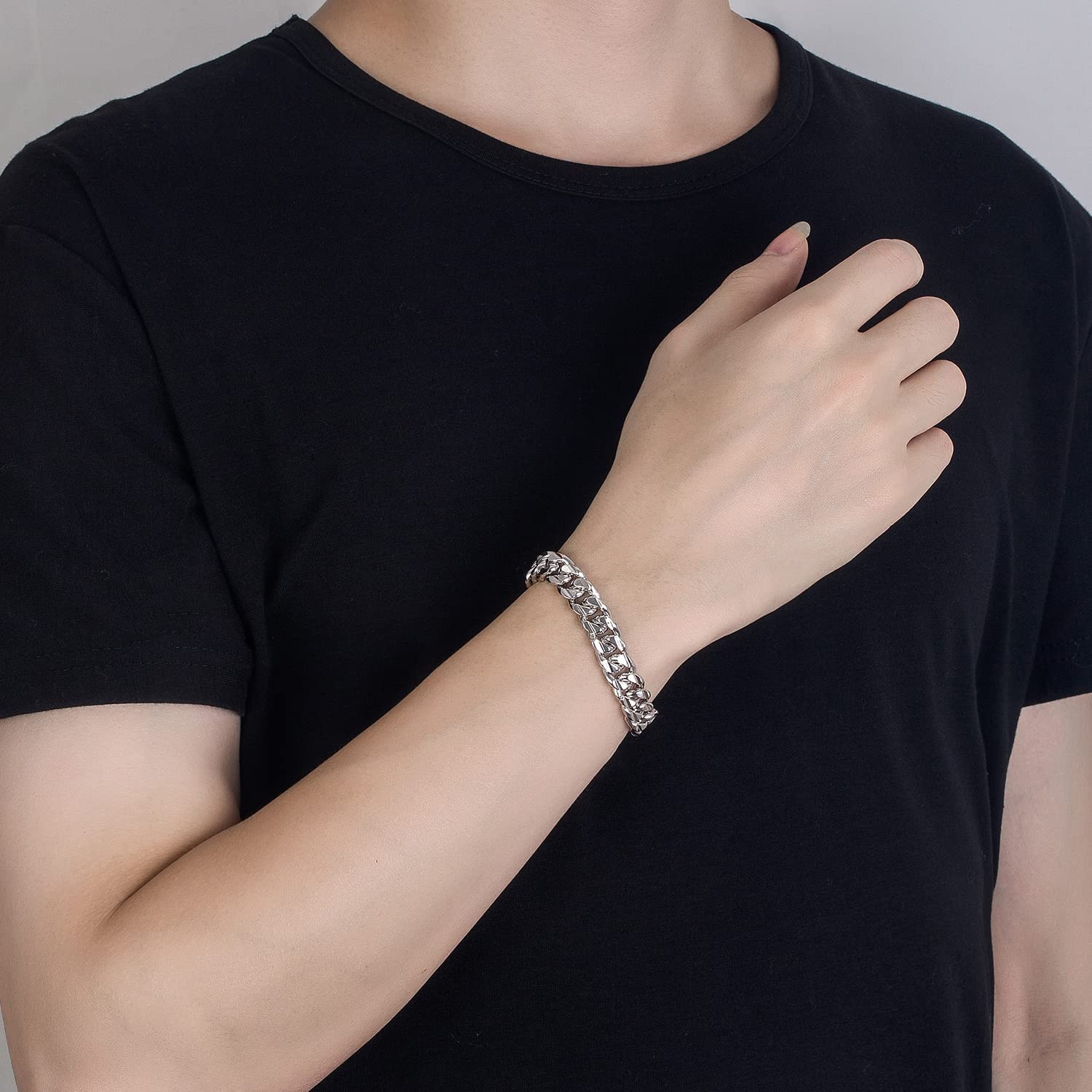 - A MODERN CLASSIC - Add style to a basic look with this Solid Sterling Silver 6.5-13mm Cuban Bracelet. Our flat diamond-cut beveled links are more reflective than standard whip chains for a rich, flawless shine. Sturdy and durable enough for everyday wear, but not too thick and comfortable to wear. A chain brings modern elegance to both casual and formal wear, and can be worn alone for an elegant everyday look, or layered with other bracelets for a stylish look.