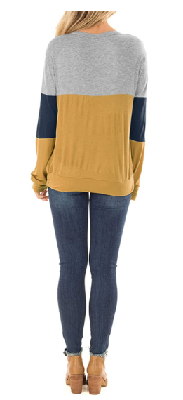 Minclouse Women's Colorblock Long Sleeve Tunic Cutout Choker Top Round Neck Casual Loose Shirt Cute Sweatshirt