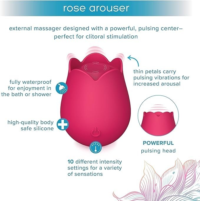 plusOne Rose Vibrator for Women - Clitoral Stimulator Made of Body-Safe Silicone, IPX-7 Waterproof, USB Rechargeable & 10 Pulsing Settings