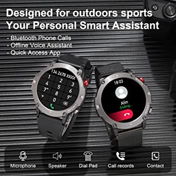 Smart Watch for Men Outdoor Tactical (Answer/Make Calls), 2022 HD Bluetooth Smart Watch for Android iPhone, IP68 Waterproof Tough Rugged Fitness MusicWatch with Heart Rate/SpO2/Sleep Monitor