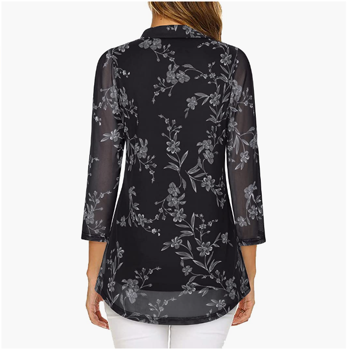 LOOSE DESIGN - Front pleats slightly conceal your midsection and waist for a better shape. The length of the shirt can hide the bun. Collar V-neck and three-quarter sleeves are very beautiful on different occasions.